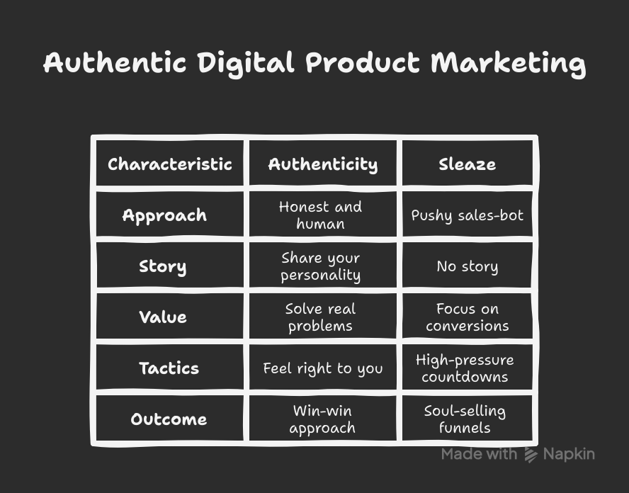 This article is the antidote. Let’s explore how to build and market your digital products in a way that keeps your integrity (and sanity) intact, while still making actual sales.